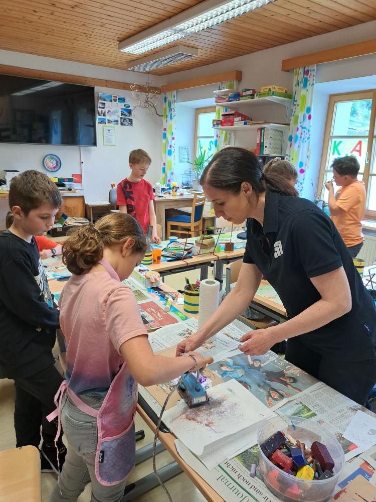 Kunstprojekt von Andreas Hackl 16. Mai 2024 1 2023/2024 Kurz vor Muttertag besuchte uns Claudia Haim und gestaltete mit den Kindern ein wunderbares Muttertagsgeschenk und eine passende Karte!