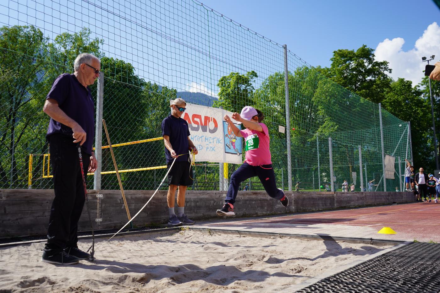 Das Team des ASVÖ baute für uns 3 Stationen für den Wettbewerb auf: 40m Lauf, Weitsprung und Weitwurf. Diese Disziplinen wurden bewertet und alle drei Disziplinen zusammen ergaben die Gesamtwertung für jedes einzelne Kind.